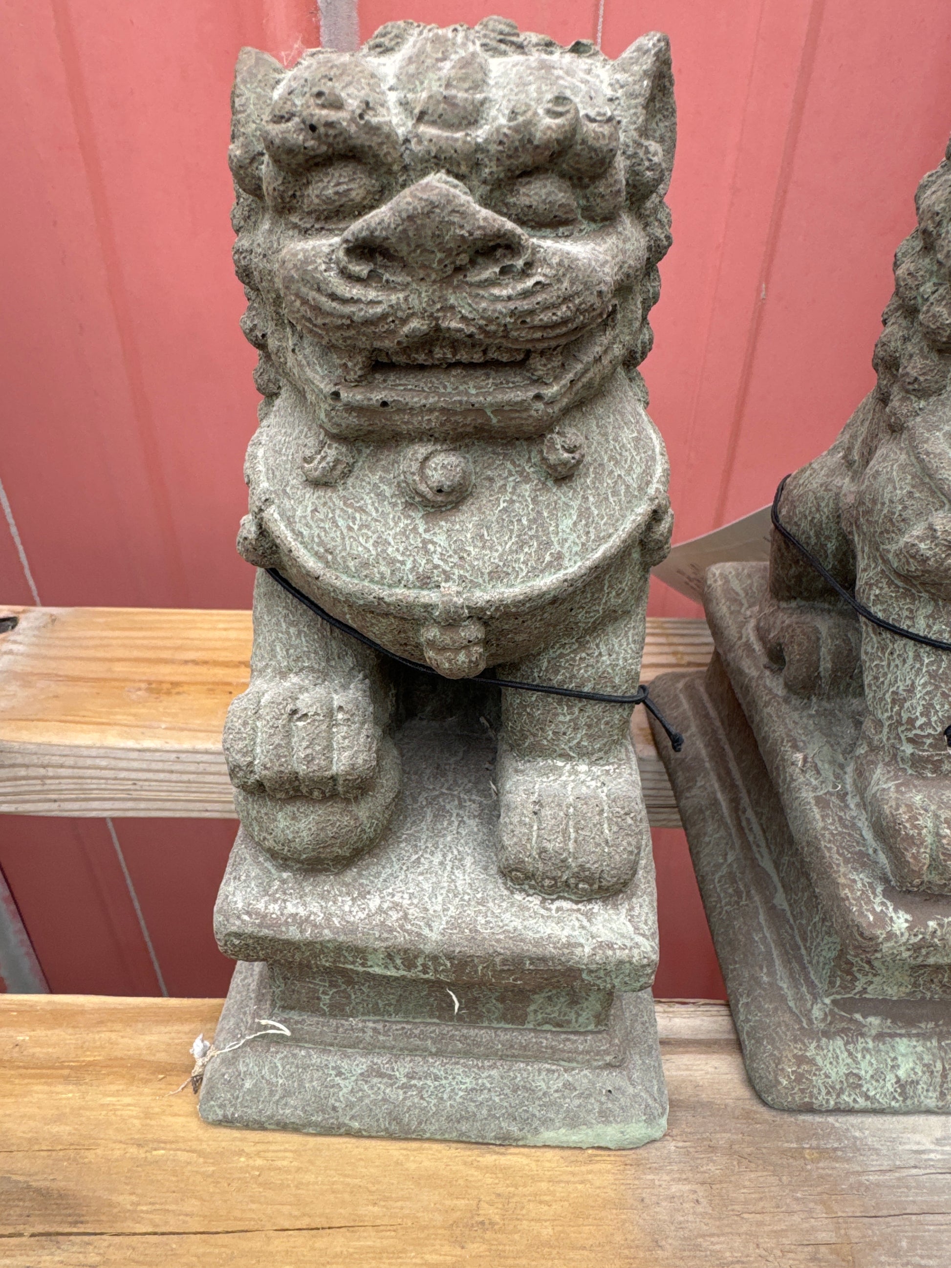 Set - Left & Right Facing Small Temple Foo Dog Concrete Statues